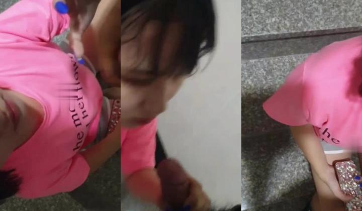 大叔!楼梯间偶遇玩手机的女孩,哄骗她吃鸡巴舔蛋。女孩说:鸡巴有点咸?